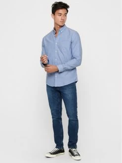 Ολοκαίνουργιο ❤️ Only & Sons Άνδρες Casual Πουκάμισα Πουκάμισο Alvaro 22006479 Μπλε Slim Fit 💯