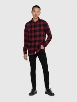 Προϋπολογισμός ⭐ Only & Sons Άνδρες Casual Πουκάμισα Πουκάμισο Gudmund 22007112 Μπορντό Slim Fit ⌛